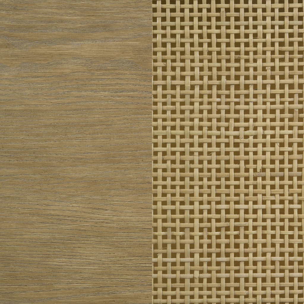 This 65-inch sideboard combines modern sophistication with organic charm and exceptional functionality. Featuring handcrafted woven cane door panels from Indonesia, it adds natural texture to any space. Constructed from solid Asian hardwood and white ash veneer, its refined craftsmanship is enhanced by a 17-step finishing process. Felt-lined drawers with English dovetail construction glide smoothly on 45mm metal ball-bearing tracks, while soft-close Euro-hinged doors and adjustable shelves offer practical storage. Antique brass knobs and legs complete the elegant design.