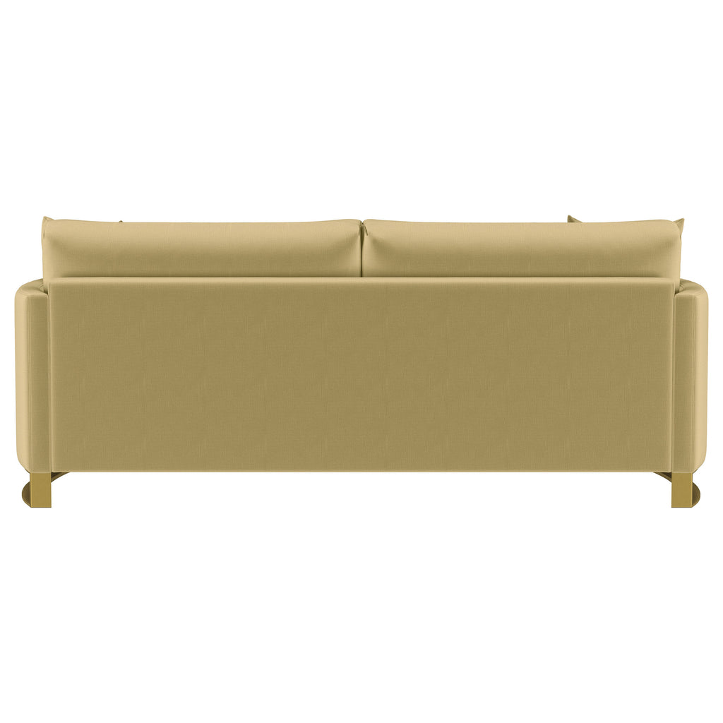 Indulge in opulent comfort with this textured velvet sofa. Its reversible feather blend seat and back cushions, complemented by curved arms and gold stainless steel legs. Smooth upholstery and lustrous details blend simplicity with timeless splendor, making this piece a perfect focal point for refined interiors. With its inviting profile and graceful presence, it elevates both style and relaxation.