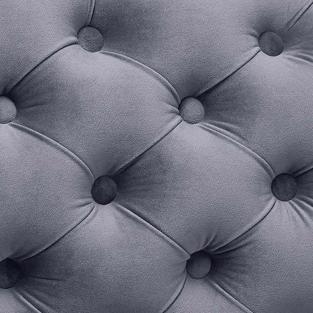 How about a modern marvel on your very own dining space? This brilliant piece features an upholstered gray velvet fabric padded seat held up by two legs finished in chrome. Edges have welt trim, while the unique backside features beautiful, deep button-tufting.