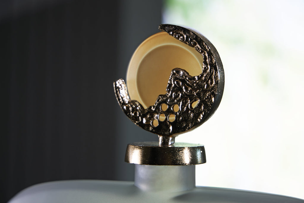 Bring stately elegance home with this jar. Made with frosted glass in a luxurious taupe finish, its ombre effect adds visual intrigue to a shelf or mantle. A textured goldtone topper provides an added dose of traditional flair.More About This Product
