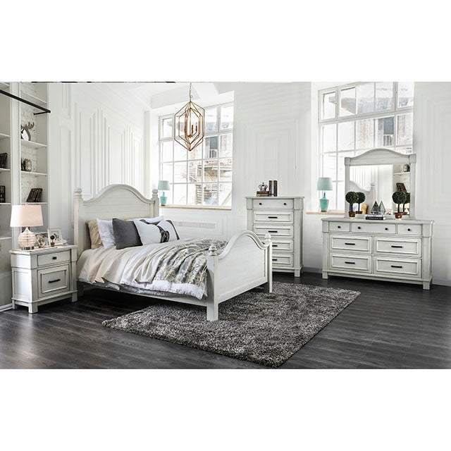 This mirror features a camelback design with sleek plank details providing a cohesive look to your bedroom.