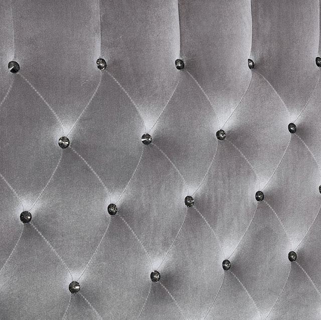 Comforting cushioned velvet-like fabric encompasses this chic bedroom set. Admire the glamorous wingback headboard as glimmering acrylic button tufts and framing nailhead trim dazzles. Run your hands over the soothing night stand and easily store essentials in its storage space. Cabriolet feet add a finishing polish as they provide unwavering support to this elegant bedroom set.