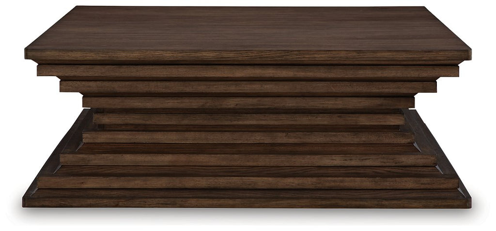 A statement-making table? Yes, please. The distinctive silhouette of this coffee table is sure to captivate lovers of contemporary design. Featuring head-turning architectural geometry and a rich, inviting warm brown finish, this piece is ready to take your decor to the next level. And to the next room, thanks to its handy casters.More About This Product