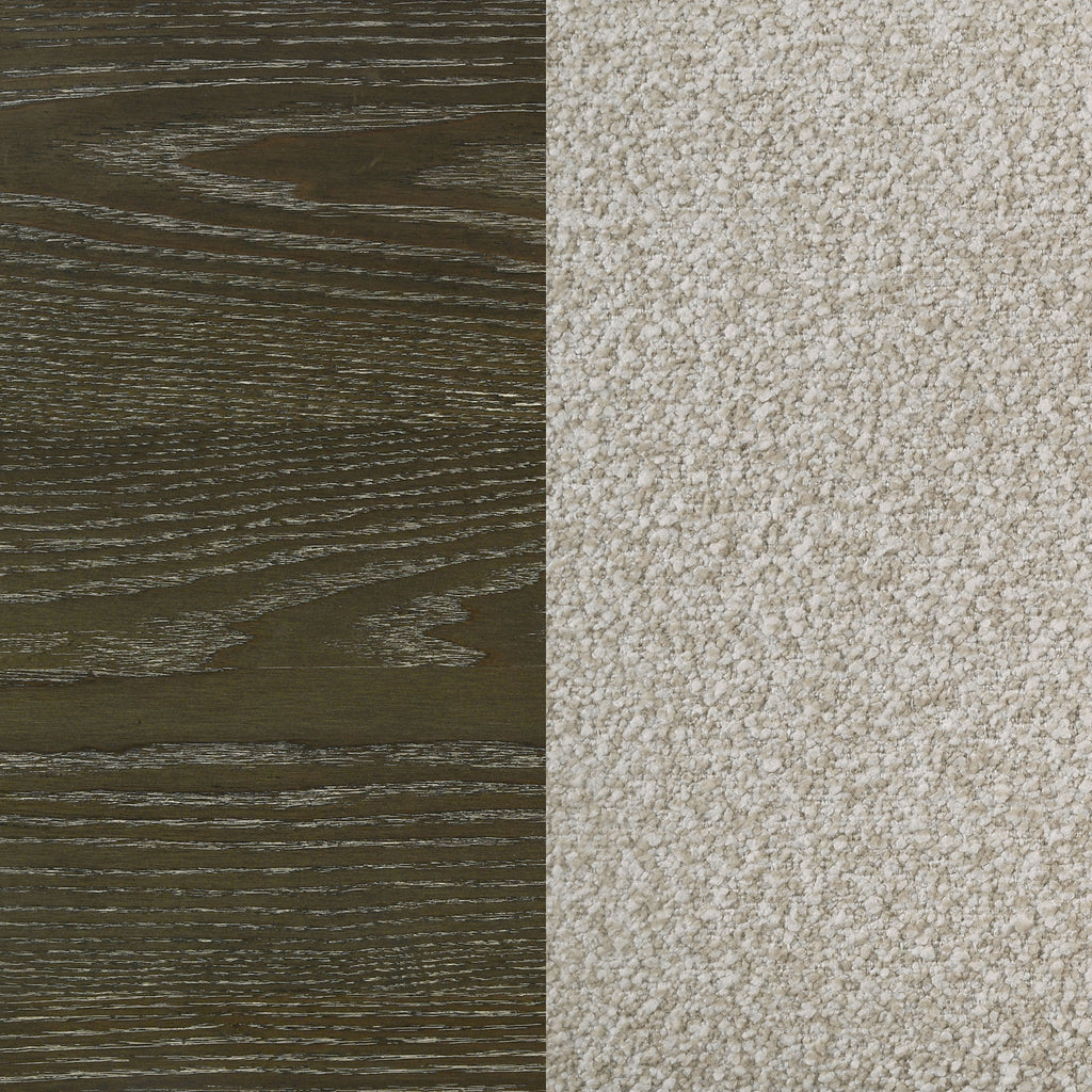 Transform your bedroom with this elegant panel bed featuring a 59-inch tall headboard upholstered in beige boucle fabric for a soft, textured appeal. The dark cocoa wood finish highlights the natural grain, lending warmth and sophistication to the design. Crafted from Asian hardwood, engineered wood, and foam, this bed offers a durable and supportive structure. The classic panel design makes it a timeless and versatile centerpiece for your bedroom.