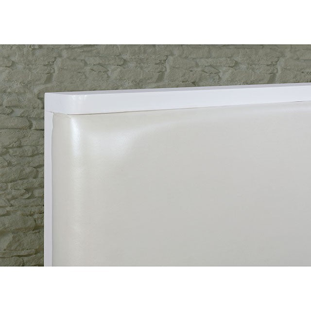 For a quick modern update to your home, this collection will add that trendy mid-century appeal. Featuring a sleek white finish and a leatherette headboard, this panel bed is complete in a platform style with an included mattress ready slat kit. Coordinating case goods boast slim flared legs and recessed handle drawer pulls. A choice of oval or rectangular wall mountable mirror completes this set.