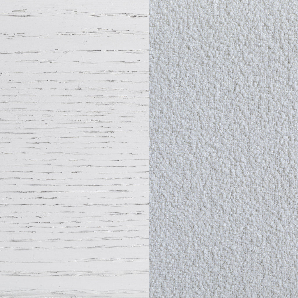 Refresh the look and feel of your bedroom with the inviting character of a modern upholstered bed. The bed features a wood frame in a distressed white finish that highlights its grain details. The headboard is a squared design complete with a padded panel upholstered in white for a monochromatic effect that's clean and contemporary. A low footboard completes the look and creates an open, inviting profile for your bedroom.