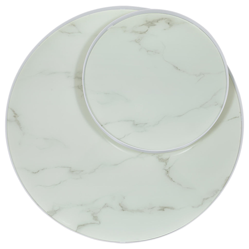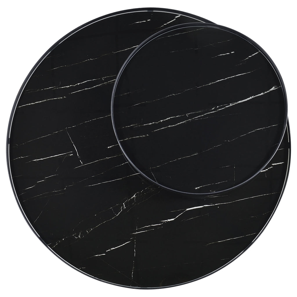 This modern coffee table set combines style and durability with tempered glass surfaces featuring a sophisticated marble-patterned print. The sleek metal frames provide stability, while the multi-tier design enhances functionality for storage or display. Perfect for contemporary living spaces, this occasional set blend seamlessly with modern decor, offering an elegant and practical solution for everyday use. Their lightweight yet sturdy construction ensures easy repositioning and long-lasting durability.