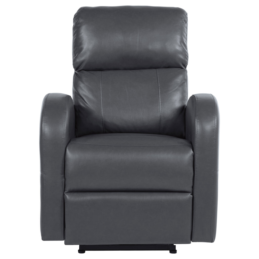 Create the perfect place for stylish lounging with a modern power recliner in your den or living room. It delivers a compact silhouette, offering on-trend style, with neutral faux leather upholstery. Its tall, slim back and plush seat feature foam cushioning, ensuring excellent comfort whether enjoying a movie or catching up with a friend. The power recline functionality is operated with buttons on the right-hand side, ensuring smooth performance. It's complete with track arms with an upward sloping profile perfect for contemporary and modern living spaces.