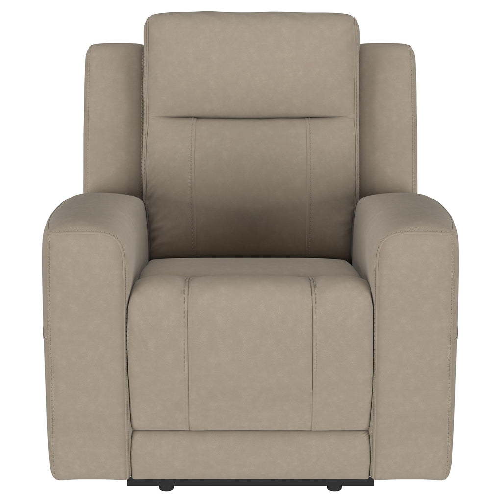 Reimagine your living room with the sleek, tailored appeal of a three-piece modern reclining sofa set. Delivering refined character, the set offers a reclining sofa, a loveseat with a center console, and a reclining armchair, perfect for a cohesive setup in your living area. Smooth faux leather upholstery is lightly tufted for comfort and support, while sinuous springs and webbed decking provide exceptional support. The loveseat is equipped with a convenience console that includes a padded top over a storage compartment for small essentials, and two cupholders ideal for game days and movie marathons. Kick up your feet and relax away all your worries.