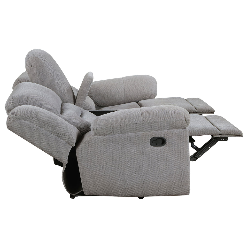 Elevate your living space with the complete relaxation experience of our manual recline sofa, loveseat, and glider recliner set. Each piece is wrapped in soft textured grey chenille fabric, providing a plush and inviting feel. The manual recline feature allows you to adjust your seating positions for optimal comfort, whether you're watching TV, reading a book, or just unwinding. The set includes removable stainless steel cup holders and convenient soft-close storage compartments for added functionality. With pillow top arm supports providing extra comfort, this set offers the perfect blend of style and coziness, making it an ideal addition to any home.