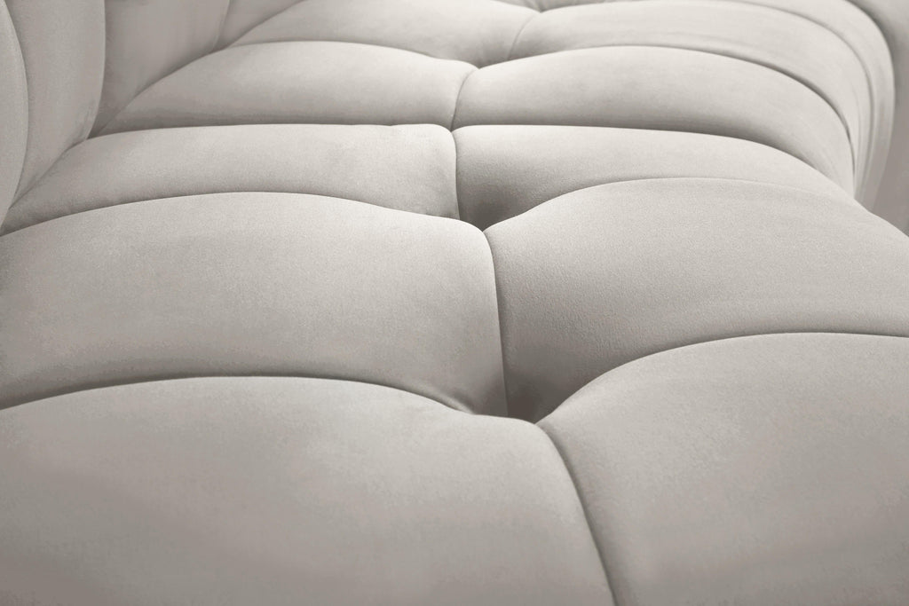 Invest in your home's comfort with this Limitless chair. This modular unit offers tons of flexibility in the number of ways that you can put each piece in the Limitless collection together to get the ideal customized look. Upholstered in cream velvet, this beautiful piece is soft and cool to the touch, so you can feel comfortable from every angle. Button and channel tufting add to this unit���s upscale look and contemporary charm.