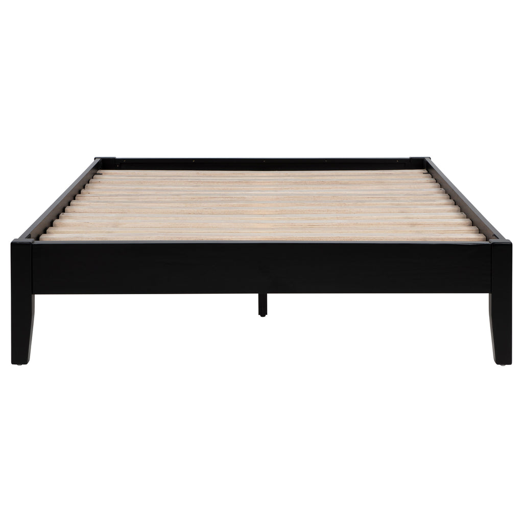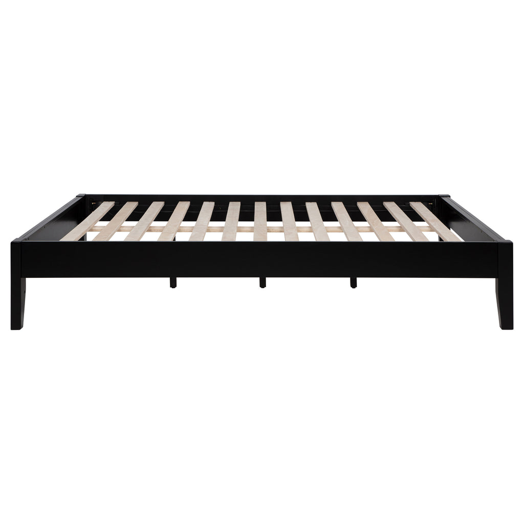 Designed for versatility, this universal platform bed offers a sturdy foundation with a fully slatted, mattress-ready design. Crafted from durable rubberwood and pine, it ensures lasting support and stability. Pre-drilled holes on the back legs allow for effortless headboard attachment, providing customization options to suit various bedroom styles. With its clean lines and solid construction, this bed serves as a functional and stylish base for any sleep space.