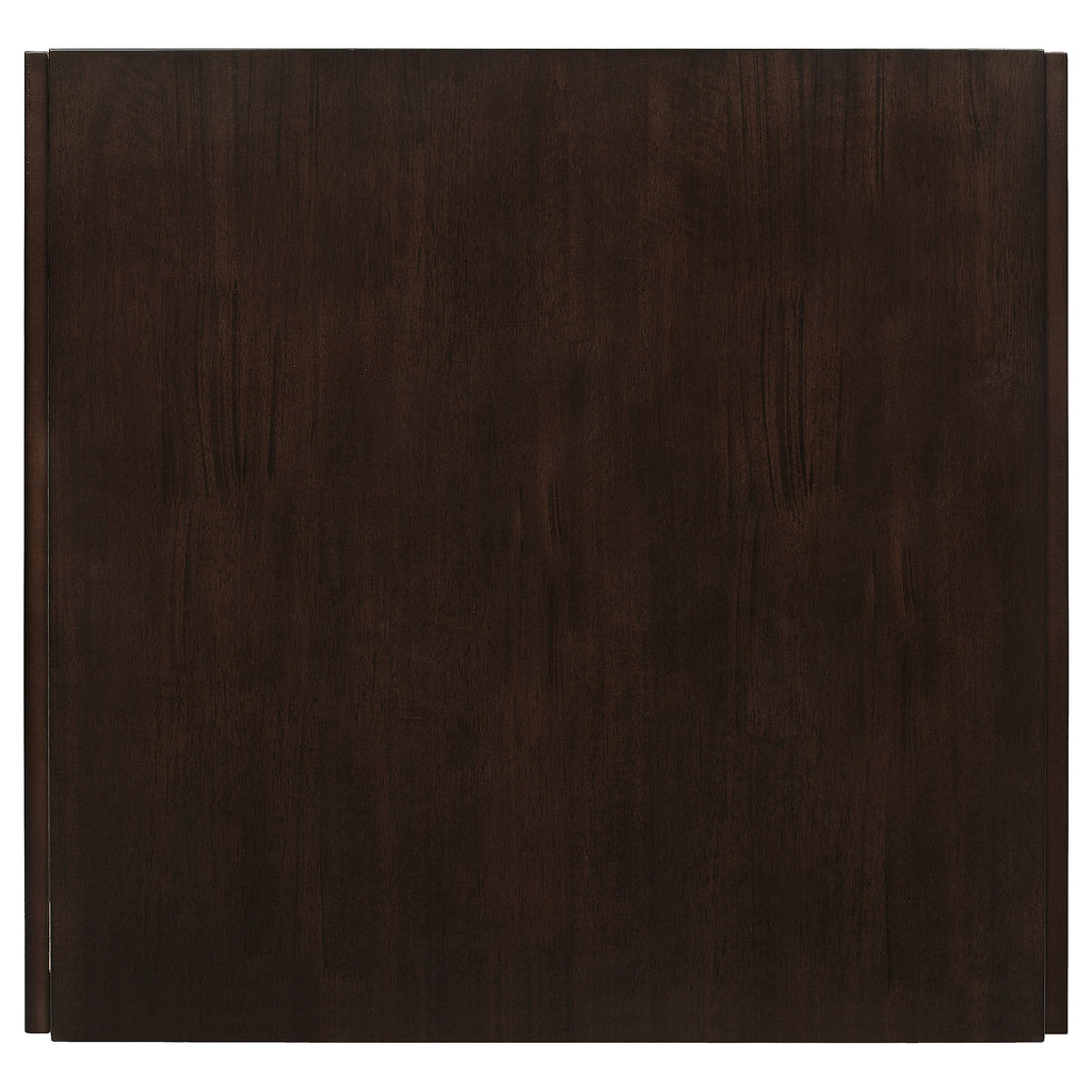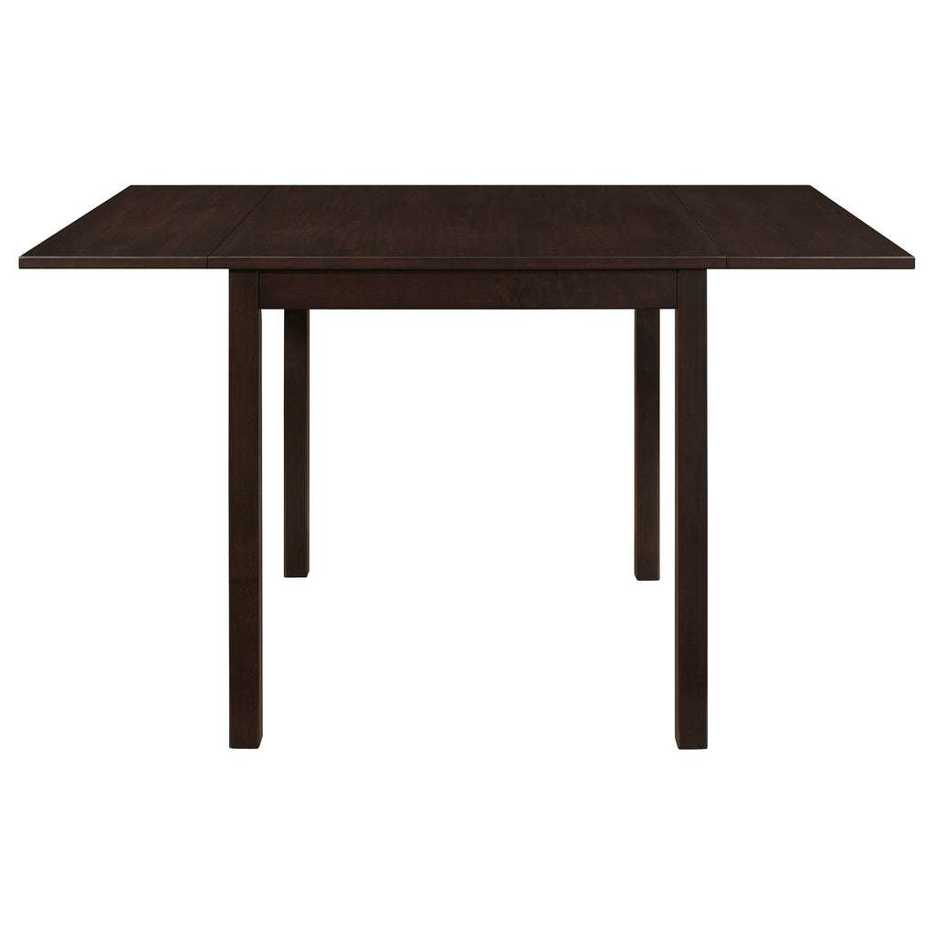 Maximize your dining space with this transitional three-piece dining set that's perfect for a breakfast nook or an apartment setting. The cozy set features a table with a drop-leaf extension and two (2) two-tone lattice-back chairs. The table is crafted with solid block legs and comes in a warm cappuccino finish. The stylish chairs are upholstered in a cushioned tan fabric and tapered legs with the same cappuccino finish as the table. It's a perfect set for a cozy gathering.