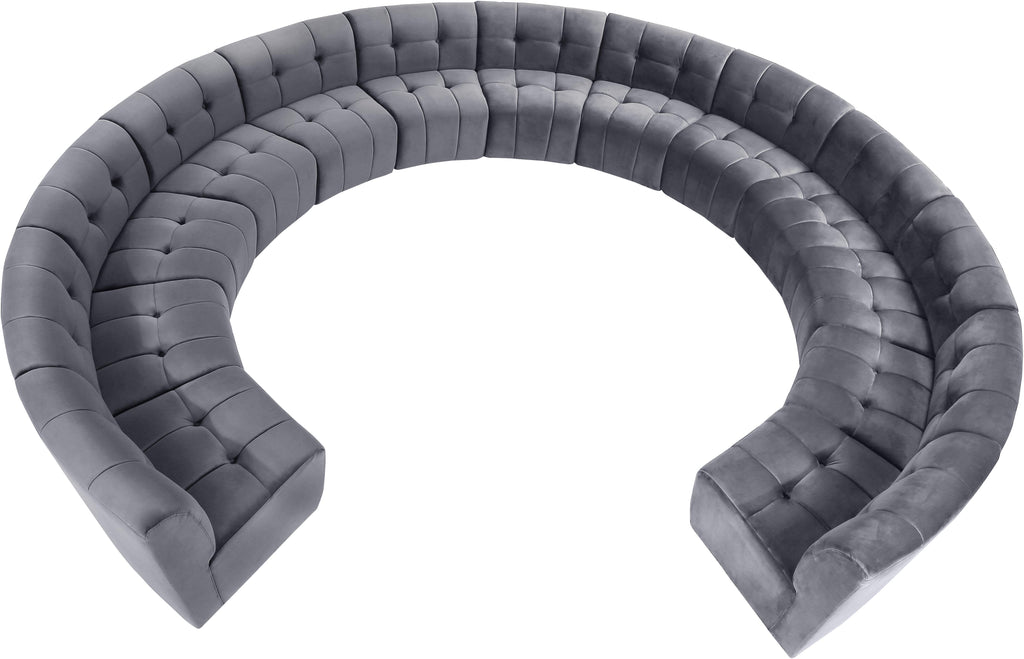 Invest in your home's comfort with this Limitless 13 Piece Sectional. This modular unit offers tons of flexibility in the number of ways that you can put each piece in the Limitless collection together to get the ideal customized look. Upholstered in grey velvet, this beautiful piece is soft and cool to the touch, so you can feel comfortable from every angle. Button and channel tufting add to this unit���s upscale look and contemporary charm.