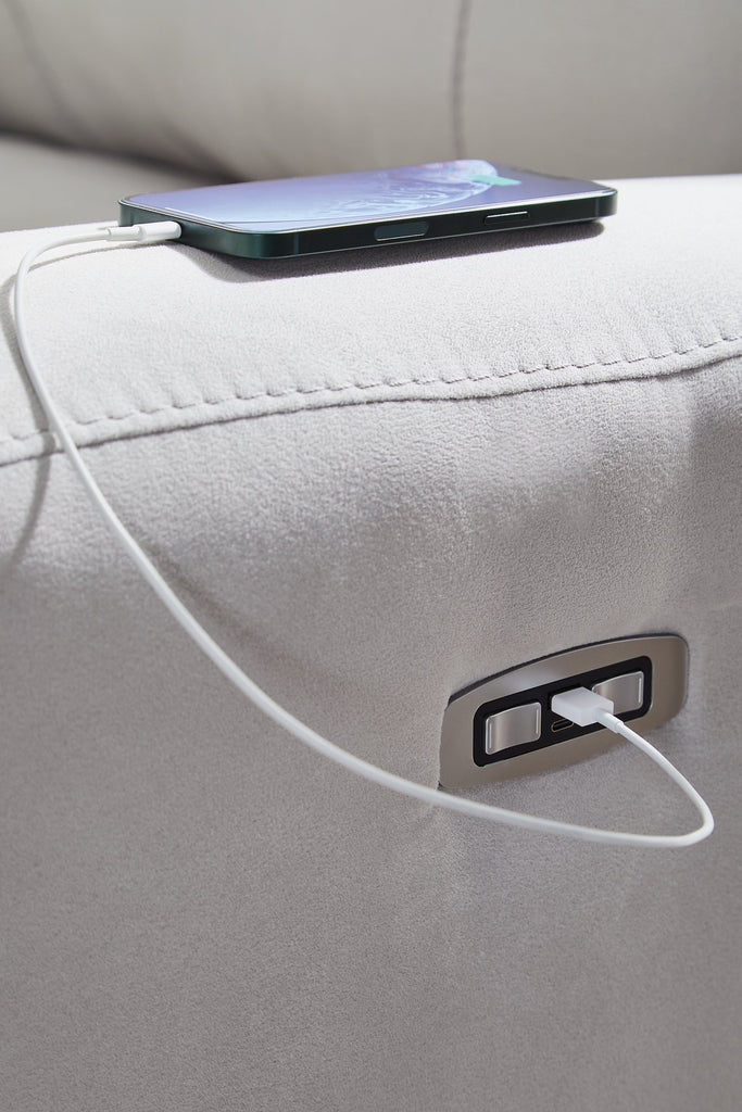 Smart, clean and ultra modern, this power reclining sectional is utterly in vogue. You'll love its indulgent cushions and contemporary bustle back styling. The sumptuous fabric, accentuated with contrasting welting, easily blends with your decor. A convenient console with storage and two cup holders keeps essentials handy. And with reclining at the press of a button, this modular sectional proves chic design and superb comfort go hand in hand.More About This Product