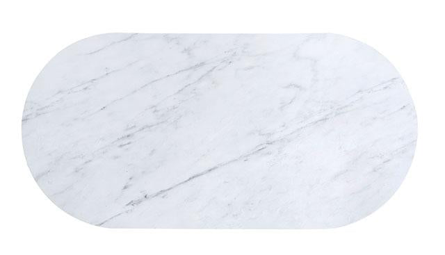 KOBLENZ Coffee Table, Light Teal, 48"L X 24"W X 18"H, 70.2lbs. Posh and chic, these rounded tables are reminiscent of the bygone era of Hollywood stars. Infused with Art Deco inspiration, each piece features matte gold frames that hold up the top and bottom shelves. The top is made of faux marble in a glorious white shade with subtle variations in color. The sides add texture to an otherwise sterile piece--reeded panels curve around the corners and conceal a storage drawer for a slick, contemporary look.